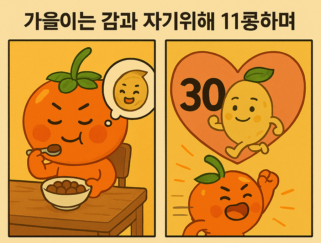 1. 콩 : 가을이는 감과 자기위해 11콩하며 (매일콩을 먹으며) 30일 동안 콩콩콩 가을감자(제주이외지역)을 마음속에 그렸다.