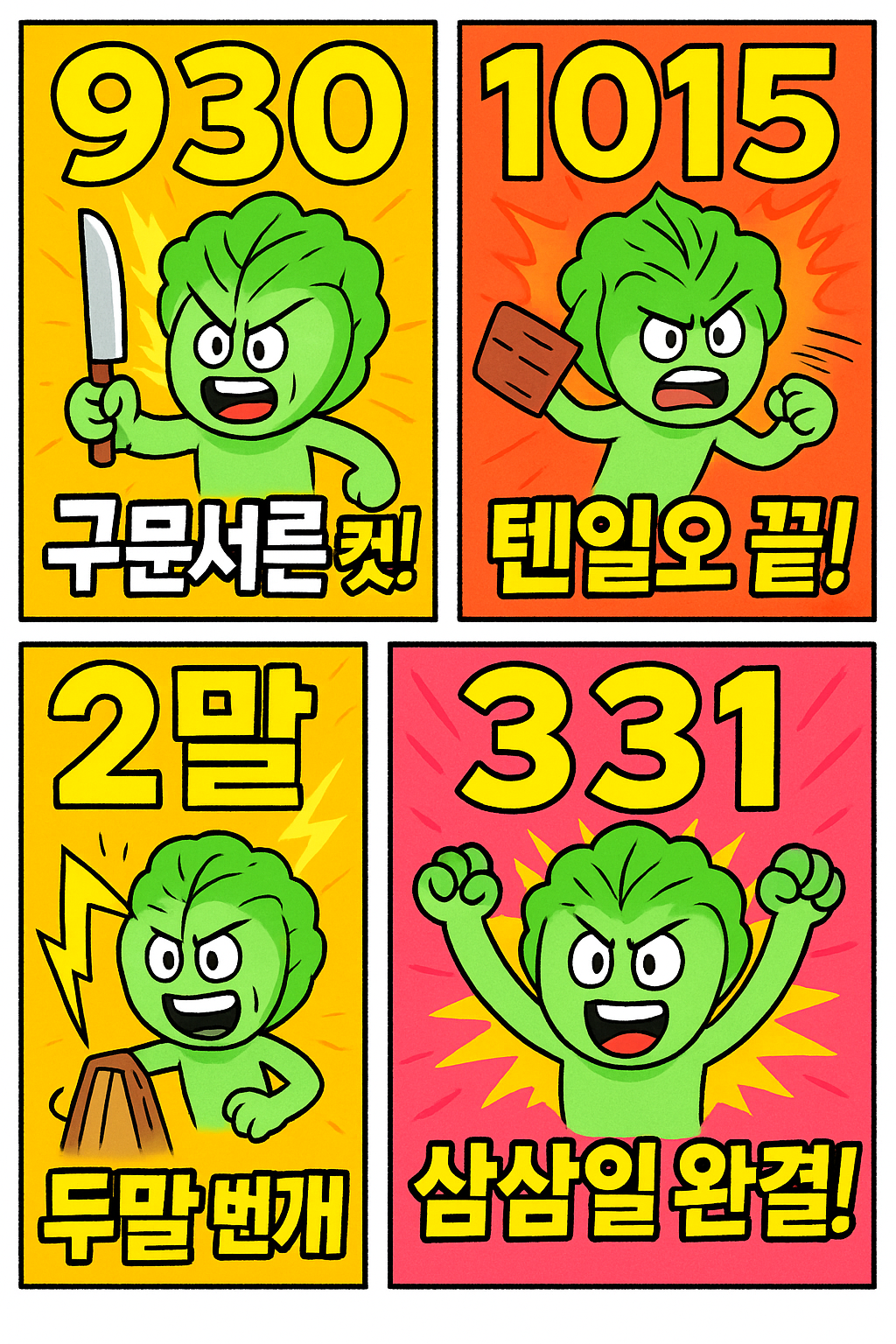 2. 양배추: 양배추는 5아들이 있었다. 그 아들들 이름은 930, 1015, 2말, 315, 331이다. 이중 세째 네째 막내는 별명이 있는데 각각 극조생조생, 중생,만생 이었다....