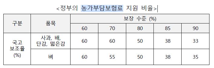 | 품종 | 가입주수 | 보험가입금액 | 평년수확량 | 표준수확량 | 자기부담비율 |