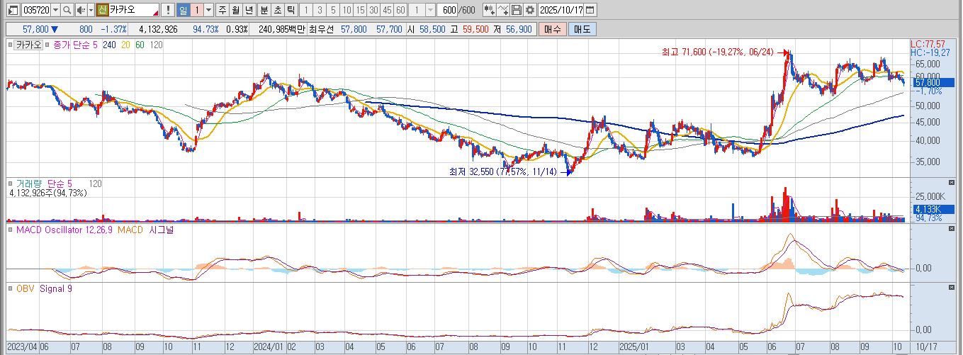 카카오 일봉 차트 분석