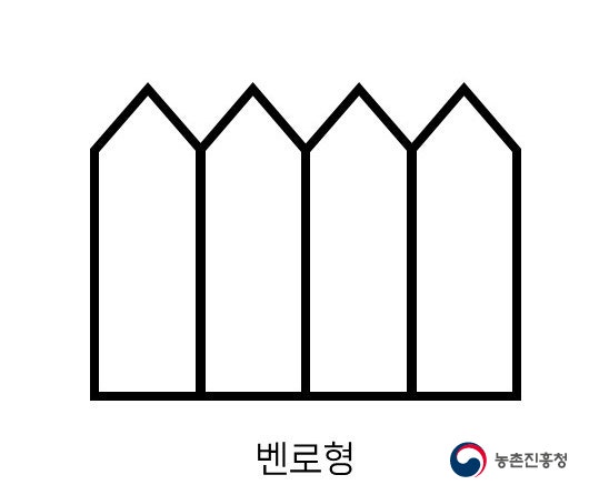 해설: 벤로형(Venlo) 온실은 유럽, 특히 네덜란드에서 발전한 대표적인 연동식 온실로, 처마가 높고 지붕 폭이 좁은 다지붕 설치 구조가 특징입니다. 온실 1동에 지붕이 2개 이상이고, 내부 환기 및 광 투과율, 구조적 안정성이 뛰어나 사계절 토마토·파프리카·화훼류 등 다목적 재배에 적합합니다.